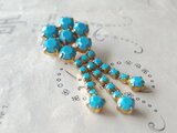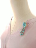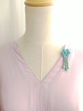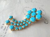 ヴィンテージ Shooting star/流れ星のような ターコイズGlassお花のブローチ