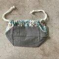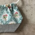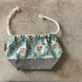 さて、こちらはお花柄とチェックのかわいい巾着袋。お弁当袋にしたり。カバンの中を整理したり。旅先の荷物を小分けにしたりと。便利サイズの巾着袋です。