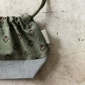 さて、こちらは可愛らしい模様の巾着袋。お弁当袋にしたり。カバンの中を整理したり。旅先の荷物を小分けにしたりと。便利サイズの巾着袋です。