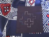 ・紺地に色や赤の幾何学模様 浴衣生地 綿100%