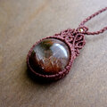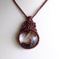 レッドルチルクォーツ(ブラジル産) マクラメ編みペンダントネックレス 良質天然石アクセサリー 男女兼用可アクセサリー 3736