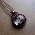 神秘的な石が引き立つように、シックな色合いのコードで丁寧に編み込んでシンプルながらも目を惹く1点ものアクセサリーに仕上げました。