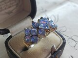 1960年代頃のヴィンテージ、ライトサファイアBlue色のGlassが連なった星々のような美しい指輪です。