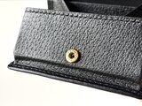 外側背面にはカードやレシートを収納できるフリーポケット、内部には三つ折りにした紙幣を収納できる札ホルダーを内蔵。