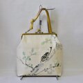 水墨画でカブトムシが描かれている夏帯をリメイクしてがま口ショルダーバッグを作りました。