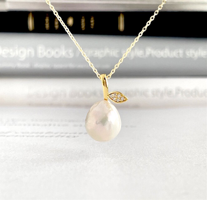 いびつな形が可愛い 淡水パール オーロラカラー ペンダントネックレス(K14gf) フルーツの形