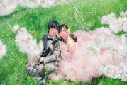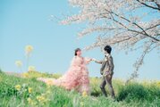 実例写真!カラードレス ピンク もこもこドレス リボン 編み上げ 披露宴 花嫁 可愛い