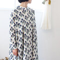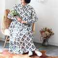 ブロックプリント前開きシャツワンピース【ネイビーフローラル】