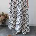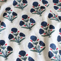 爽やかな白系とネイビートーンのフローラルモチーフ。ハンドブロックプリントならではの独特のかすれ感やムラ感があり、1点1点異なる表情が楽しめます。