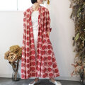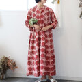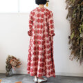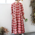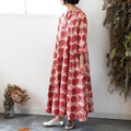 ブロックプリント前開きシャツワンピース【柘榴バグループリント】