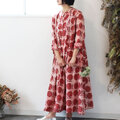 ★インドのハンドブロックプリントコットンを使ったロングワンピース。