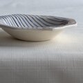 温もりある明るいアイボリーが魅力のこちらのプレートは、お料理を一層引き立てること間違いなしです!色違いの呉須縞紋が施されたデザインは、食卓に華やかさを添え、どんな料理も美味しそうに見せます。リム付き小鉢サイズなので、冷奴、サラダ、和え物、ヨーグルトやアイスクリームなど添え物からデザートまで便利にお楽しみいただけます。