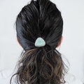 エメラルドグリーンが印象的なオリジナルタイルのヘアゴムです。