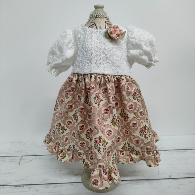 小さい着せ替え人形用ドレス㉚木綿のチェック柄のワンピースはアクセントのレースのリボンがとても可愛らしいく素敵です。 ウエスト切り替えのワンピースは袖がふわっと丸くなっていて可愛く、ピンクの薔薇のスカートとの組み合わせがとても良いです。また、縫い目もとても丁寧な仕上がりで素晴らしいです! 取引もスムーズでいつも安心して購入できております。 ありがとうございます♪