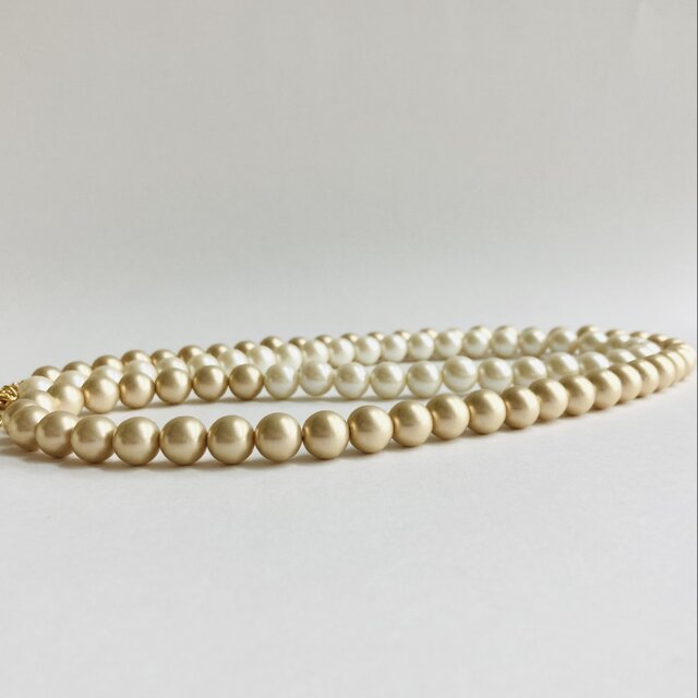 樹脂パール2Wayバイカラーロングネックレス/10mm約90cm+5cm/クリームxゴールド/G/made in japan