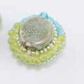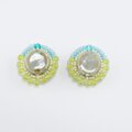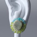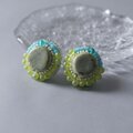 ビーズ刺繍のイヤリング ピアス 28 サークル グリーン ブルー おおぶり サージカルステンレス 一点もの 個性的