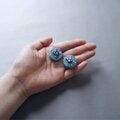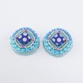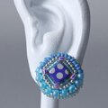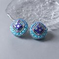 ビーズ刺繍のイヤリング ピアス 29 ドット スクエア ブルー おおぶり サージカルステンレス 一点もの 個性的