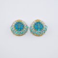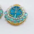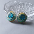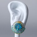 ビーズ刺繍のイヤリング ピアス 42 ブルー 葉っぱ カラフル おおぶり サージカルステンレス 一点もの 個性的