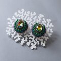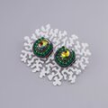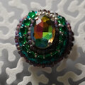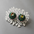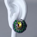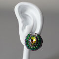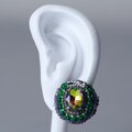 おしゃべりなイヤリング 1 まる ビジュー グリーン おおぶり ニッケルフリーイヤリング 一点もの ビーズ刺繍