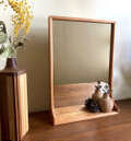 小物や、アクセサリーが置ける小さな棚が付いたミラーです。