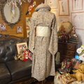 【着物リメイク セミロング ワンピース ドレス 洗える 化繊 名古屋帯サッシュベルト 和洋折衷 レトロ 古着 ハンドメイド 秋の森で、詩をひとつ。 KW-969】