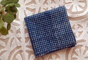 藍染め インド綿バンダナ ブロックプリント 格子柄 藍色 < indigo・ コットン・チェック柄>