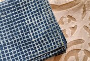藍染めのバンダナを作るときは、藍の色がとてもきれいなので柄はシンプルなものにひかれます。
