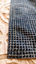 柄は細かい格子柄なのですが、プリントを作るときの作業工程の都合により格子の柄が太いところや色がかすれているところなど…柄が一定でないところが手作業ならではの魅力がありとてもきれいです。