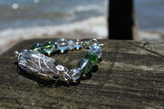 中心にヒマラヤングリーンファントムのポイント、8ミリのヒマラヤクォーツ、高品質です。12ミリのAAA級グリーンファントム、12ミリのエンジェルオーラクォーツ、10ミリのハーキマーダイアモンド、8ミリの水晶を組ませました。