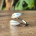 葉っぱをの形をシルバーを削り出して、叩いて丸みを出してつくり出しています。