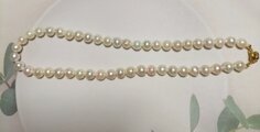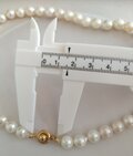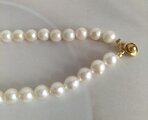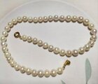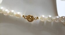 こちらは、あこや本真珠(日本産)のネックレスでございます。【全長約41.2センチ、ニューホック(留め具)も含む、留めた状態で】