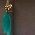 ■メタルゴールドとピーコックグリーンが織りなすゴージャスなきらめきを耳元に。