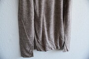 着心地も楽で、リラックスしたカジュアルスタイルに活躍するリネンニットの長袖プルオーバーです。素材はリネン100%。リネンといっても、ニット組織ですので、身体をふんわり包み込むような軽さと柔らかさが新しい感覚です。シャリシャリのざっくり編みのニットではなく、細番手の糸を編み上げた柔らかさが気持ちよいです。二重仕立てですので、透けにくく、ふんわりと包み込まれるような着心地。