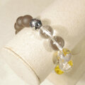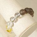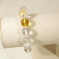 透明感の綺麗な本水晶と、シャボン玉の様な色彩豊かな輝きのレインボーオーラ、艶消し仕上げのスモーキークォーツ、ミラーボールの様にきらきらと輝く128面カットのシトリンクォーツ(人工石)のブレスレットです。シトリンクォーツ以外は天然石です。