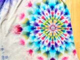 全て染色されるタイダイ染め、絞り染めの作品群。