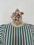 キュッと締まったデコルテ周り、お袖はフワッと膨らんでヒラヒラと二の腕を美しく包んでくれます。