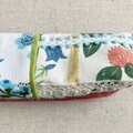 梅のようなブルーの花柄と野の花柄にレースを飾りました。