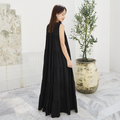 ライトコットン ふんわりシルエット 裏地付き ティアードワンピース ブラック 0656BK
