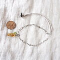 イエローにブラウンカラーが混ざったファントムシトリンに爽やかなライトグリーンのペリドットを添えてトップに配し、サージカルステンレスのオーバルチェーンを合わせた透明感のあるナチュラルな雰囲気のペンダントです。