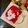 【和洋折衷 名古屋帯リメイク ハンドバッグ バック ショルダーチェーン付き ガマ口タイプ 帯サッシュベルト セット 真紅の帯地に、ふわりと浮かぶ白と水色の芍薬たち。あ-86】