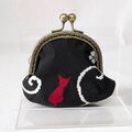 黒色地に猫に桜の柄が可愛い着物からがま口を作りました。
