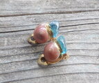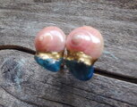 Grotta Azzurra サーモンピンクのうず巻きシェルと青の洞窟の金継ぎイヤリング☆蝶バネ