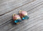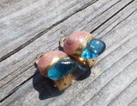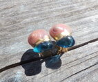 可愛らしいサーモンピンクの渦巻き貝と青の洞窟を思わせるブルーのガラス玉を