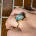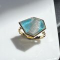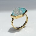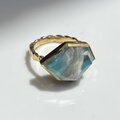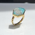 ship wave 波しぶきのダブレット石 ガーデンクォーツ × ターコイズ 変形6角形 シルバーSV925リング