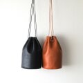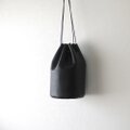 ぷっくりしたフォルムがかわいい、小さな革の巾着バッグです。