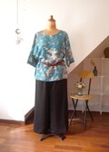 着物リメイクの作品を初めて購入しました。留袖の柄や刺繍は重厚感があり綺麗ですがワンピースに仕立てると重たく感じるのではと心配していました。作品が届き手にした瞬間とても軽く驚きました。70代後半で着物を着ることが辛くなってしまった母も、これなら楽に着られると喜んでくれました。作品サイズは詳細に掲載していらしたので安心でしたが、総重量を掲載して頂くともっと購入者も増えるかとお節介ながらの感想です。