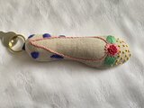 靴のモチーフを刺繍したキーチェーン、バッグチャームです。