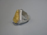 リングのサイズは13号、重さは24g、最大幅は28mm、金属部分は純銀です。