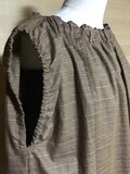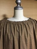 首元と袖ぐりにゴム入りのギャザーを寄せ、ふんわりとしたシルエットに優し差を引き立ててくれます。