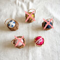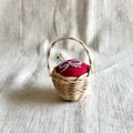ラタンで編んだ小さなミニかごをピンクッションにしました。